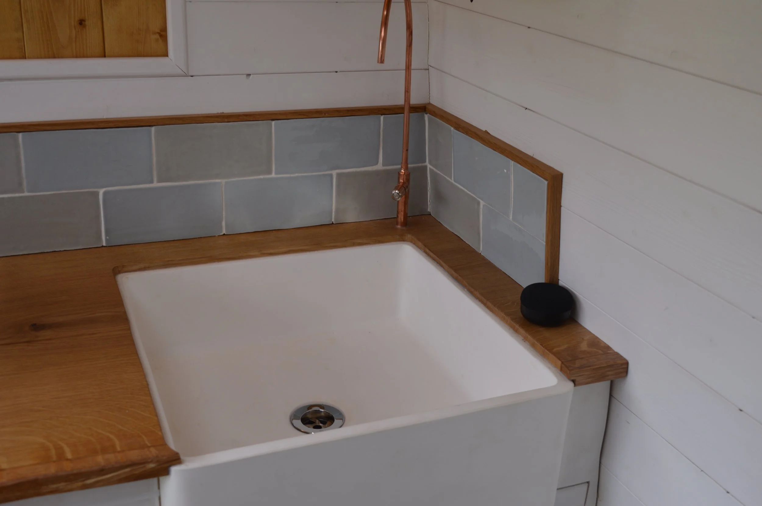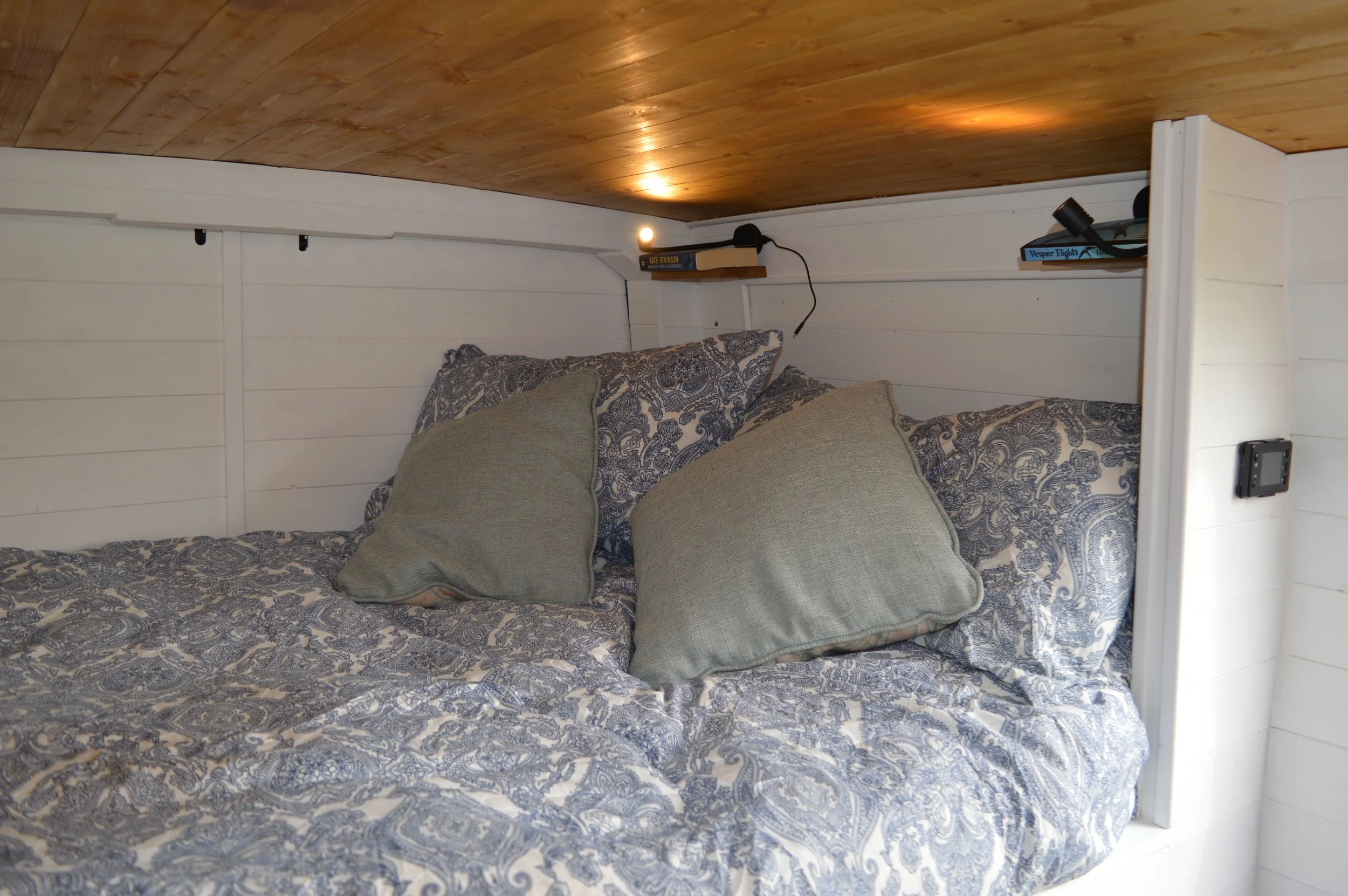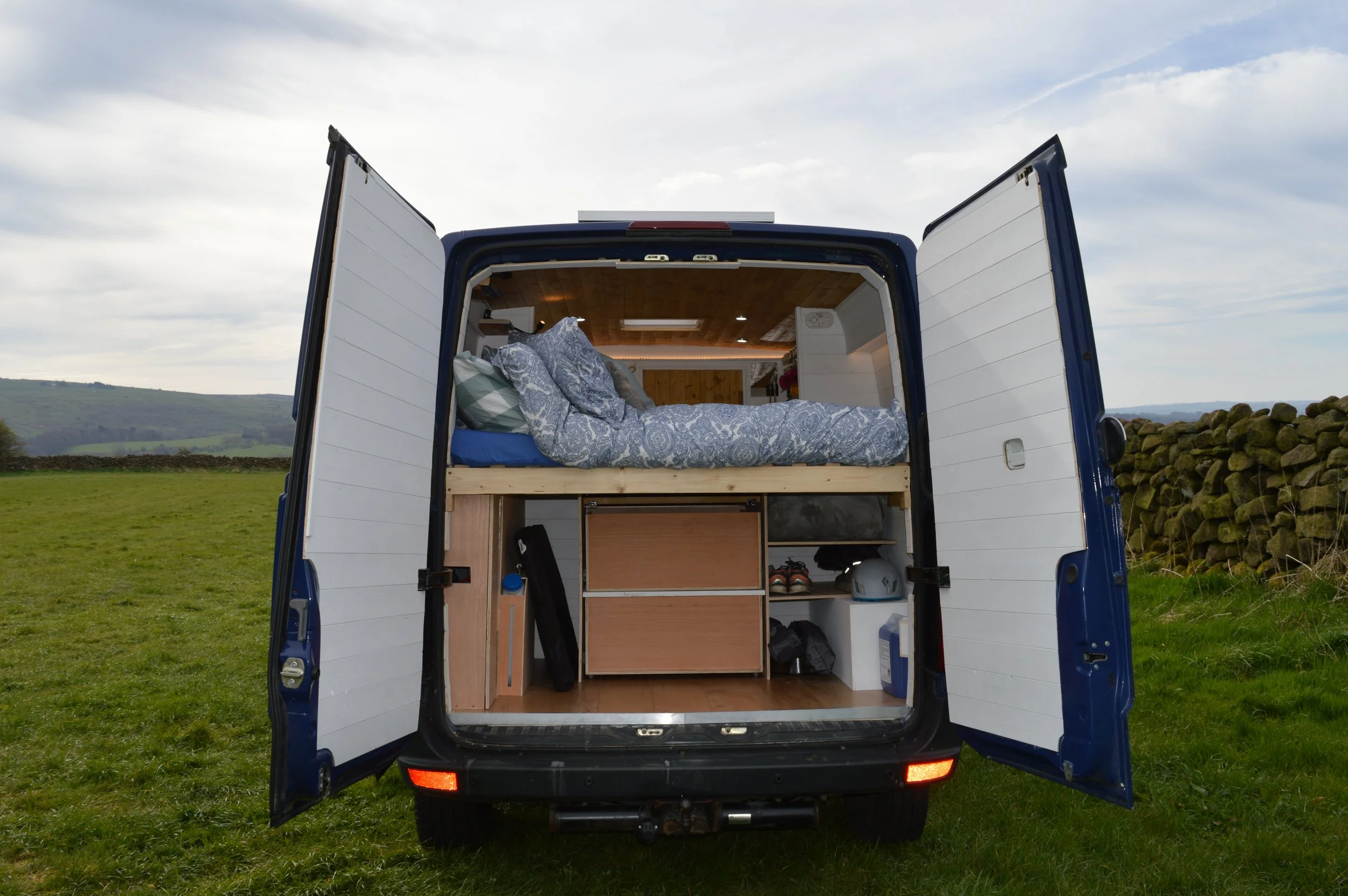 Luca is based on a short wheel base VW Crafter, and features a cute country kitchen, dining area for 2, a fixed double bed, and a single childs bed.